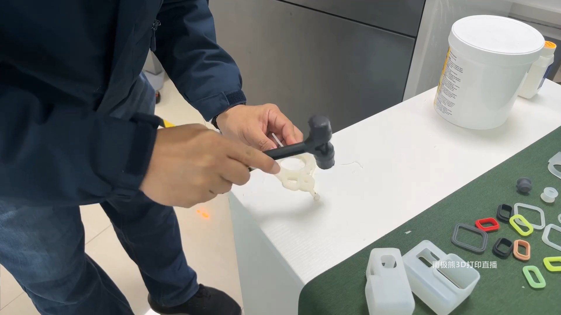 林志宏在直播間演示了使用3D打印的蛋殼模具,通過(guò)注入硅膠來(lái)制造零件的過(guò)程,整個(gè)過(guò)程非???,僅需要1-2分鐘時(shí)間。模具上設(shè)計(jì)好了多個(gè)排氣孔位,方便排出氣體,注入之后封堵好入口,然后將模具放置進(jìn)行固化定型。