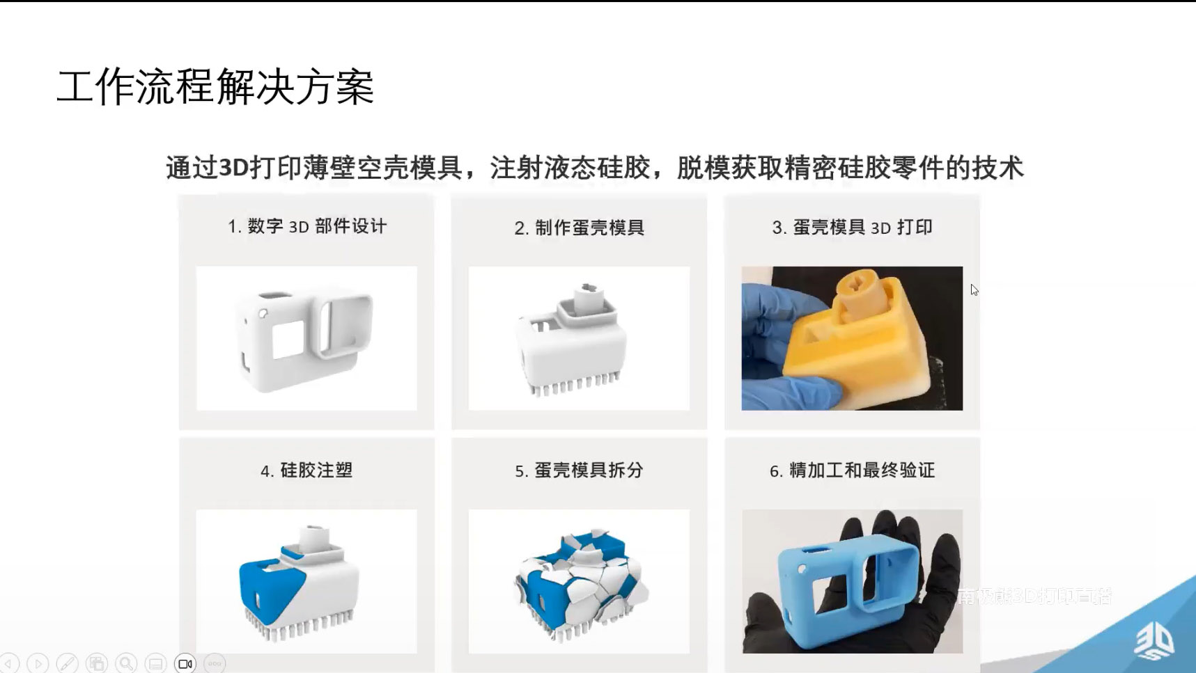 2025年3月25日,全球3D打印技術(shù)領(lǐng)軍企業(yè)3D Systems攜手中國(guó)合作伙伴廈門(mén)興安泰科技,通過(guò)線上直播形式展示了其創(chuàng)新的“3D打印蛋殼模具技術(shù)”。這場(chǎng)名為“揭秘3D打印蛋殼模具與硅膠件制造”的直播活動(dòng),吸引了科技愛(ài)好者、制造業(yè)從業(yè)者及醫(yī)療、消費(fèi)等多個(gè)領(lǐng)域的專業(yè)人士關(guān)注,為增材制造在硅膠部件生產(chǎn)中的應(yīng)用提供了全新思路。