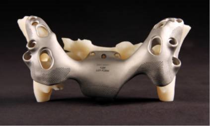使用鈦粉,植入物通過高能激光束進(jìn)行制作,擁有一定的孔隙和表面粗糙度以便骨骼生長。制作的植入物有鈦金屬的強(qiáng)度,但不妨礙進(jìn)行X光照射,從而給醫(yī)生更好的觀察視角,了解如何讓植入物與病患身體結(jié)構(gòu)互相作用。
