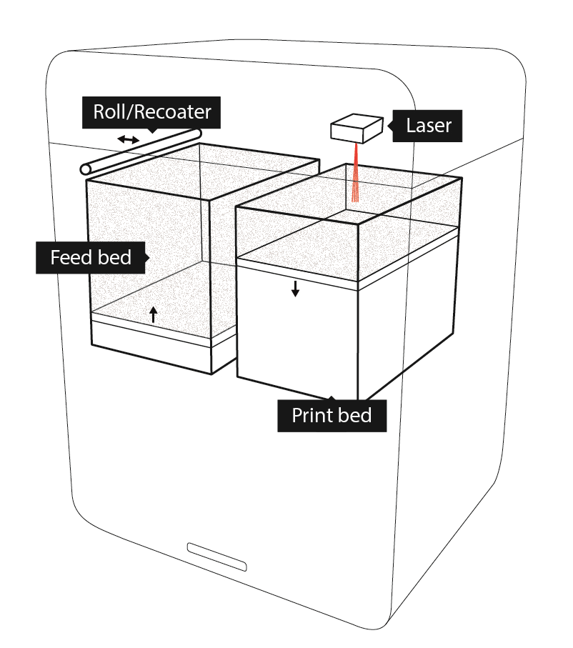 SLS是3D打印行業(yè)歷史最悠久的工藝之一,也是目前最著名和最可預(yù)測的添加劑制造技術(shù)。它的工作方式非常簡單。激光束在密封室中燒結(jié)粉末材料,有時在惰性氣體氣氛中防止氧化。當(dāng)燃燒室預(yù)熱時,剛好低于粉末的熔化溫度,激光僅用于添加少量能量來熔化粉末。