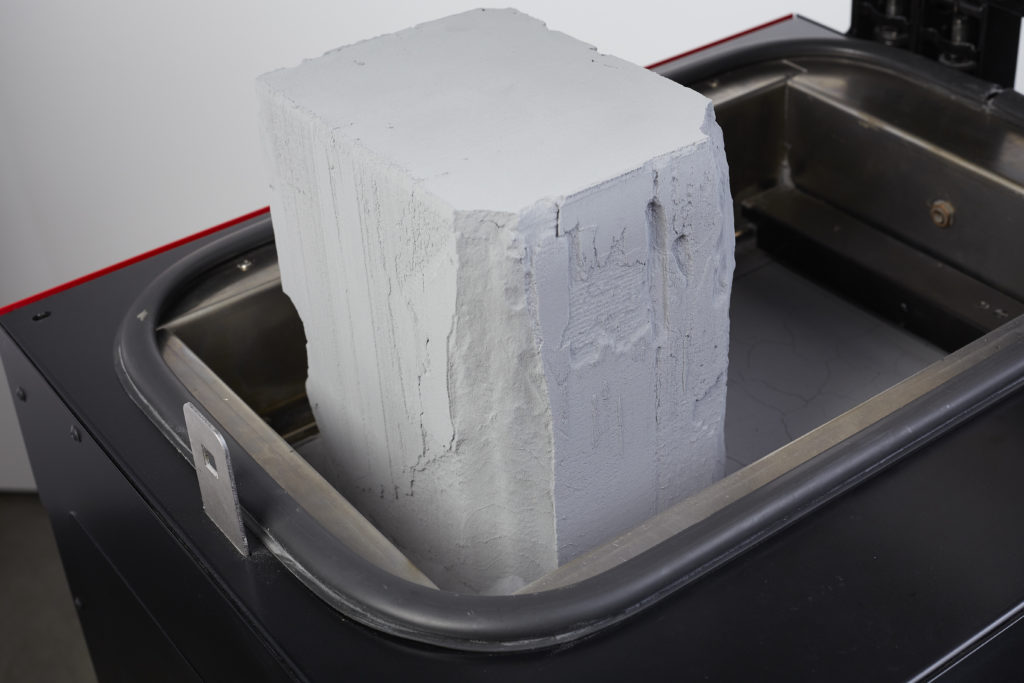 ·后處理不僅是必需的,而且是多線程、混亂的過程。打印完成后,需要在超聲波浴中清洗樹脂或?qū)⒘慵菰贗PA(異丙醇)中,然后必須拆下支架,然后用紫外線燈固化打印輸出。