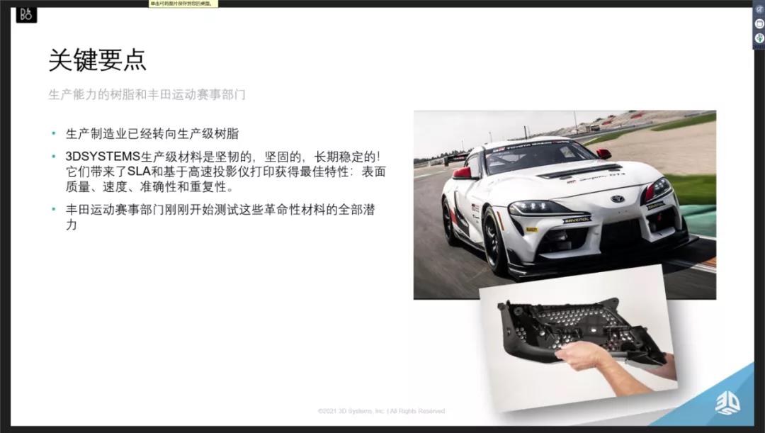 ?前言:豐田Gazoo Racing賽車 (TGR)團隊一直在與3D Systems合作,為賽車運動、汽車定制以及短期和長期生產(chǎn)能力尋找增材制造(AM)解決方案。