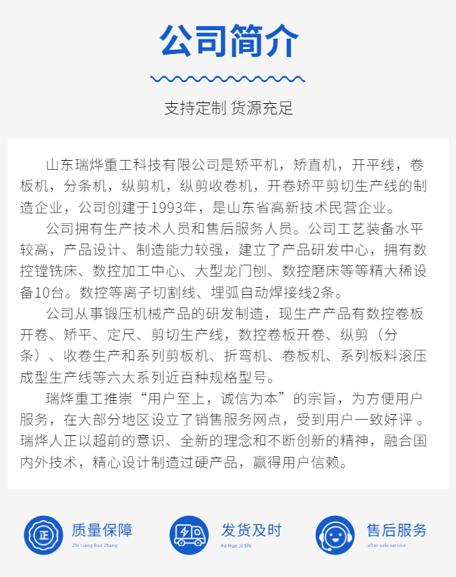 山東瑞燁重工科技有限公司主營校平機、開平機、縱剪機等產(chǎn)品。
