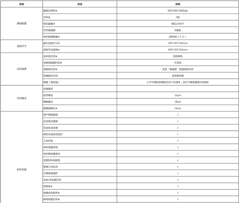 微滴直噴式3D打印解決方案 功能:支持高精度單色打印 規(guī)格:2組打印頭 , 成型平臺尺寸400*350*250mm